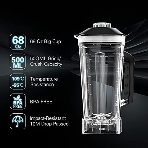 【68 oz Tritan container, Sturdy and Durable】 The cooking blender with BPA Free is built to last and easy-to-hold handle. The blender base is equipped with anti-slip suction feet so that you can blend safely on your kitchen countertop. The 68oz(2L) professional blender is perfect for family and commercial use.