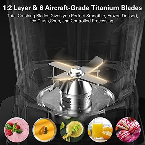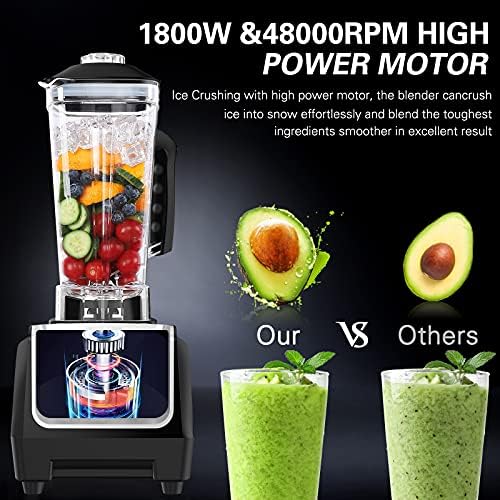 【Great Professional Kitchen Blender】Powerful Motor, 1800W professional blender + 6 Blades with up to 48000 RPM can break the cell walls of soft and hard ingredients in seconds and make crushing ice fast blend ingredients smoothly. Our Pure copper motor, durable and longer-lasting.