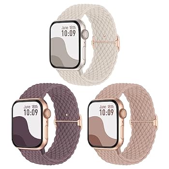 Braided Solo Loop Compatible with Apple Watch Band 38mm 40mm 41mm 42mm 44mm 45mm 49mm, Women Men Adjustable Nylon Stretchy Elastic Strap Wristbands for iWatch Ultra Series 8 7 6 5 4 3 2 1 SE, 3 Pack